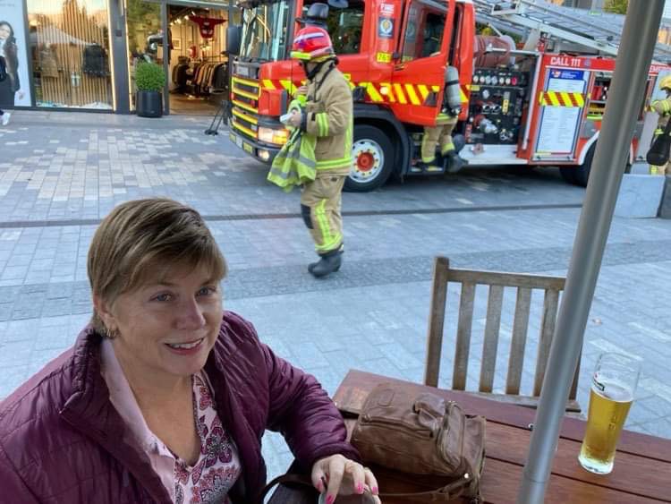 We had just settled in to ‘our’ pub – same seats beside the fire and TV, and first drinks when the fire alarm went off. They couldn’t find the source of the alarm so the entire pub and block were evacuated. We had ring-side seats for the fire engine arrival – which was quite prompt.