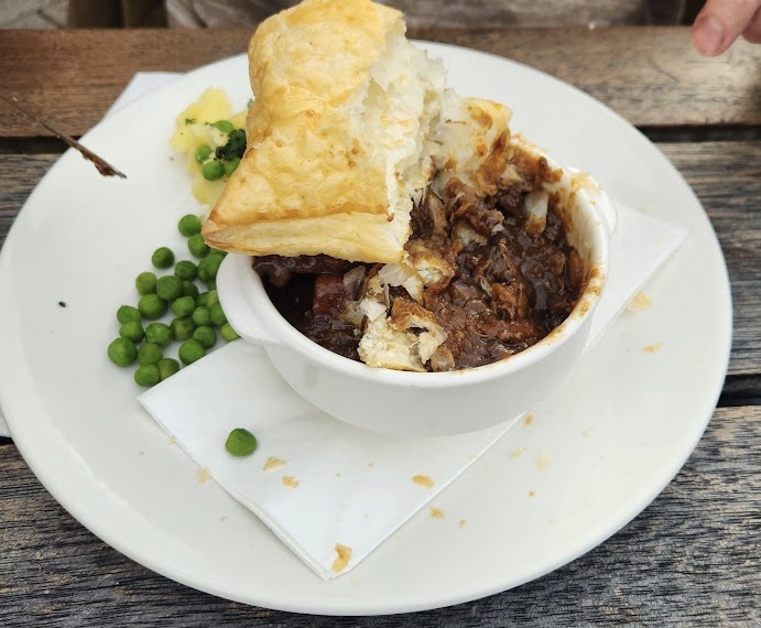 Breaking Mark’s cardinal rule of never eating at the same place twice, we returned to Pub on Wharf. Wayne wanted the steak and ale pie I had the night before.