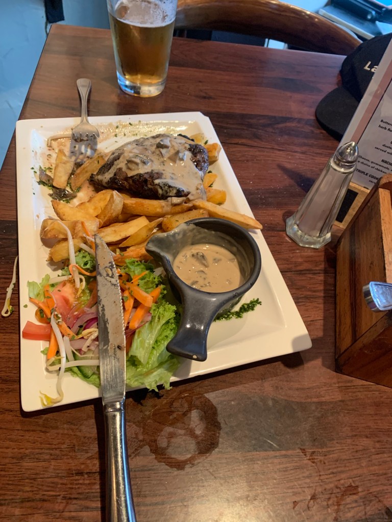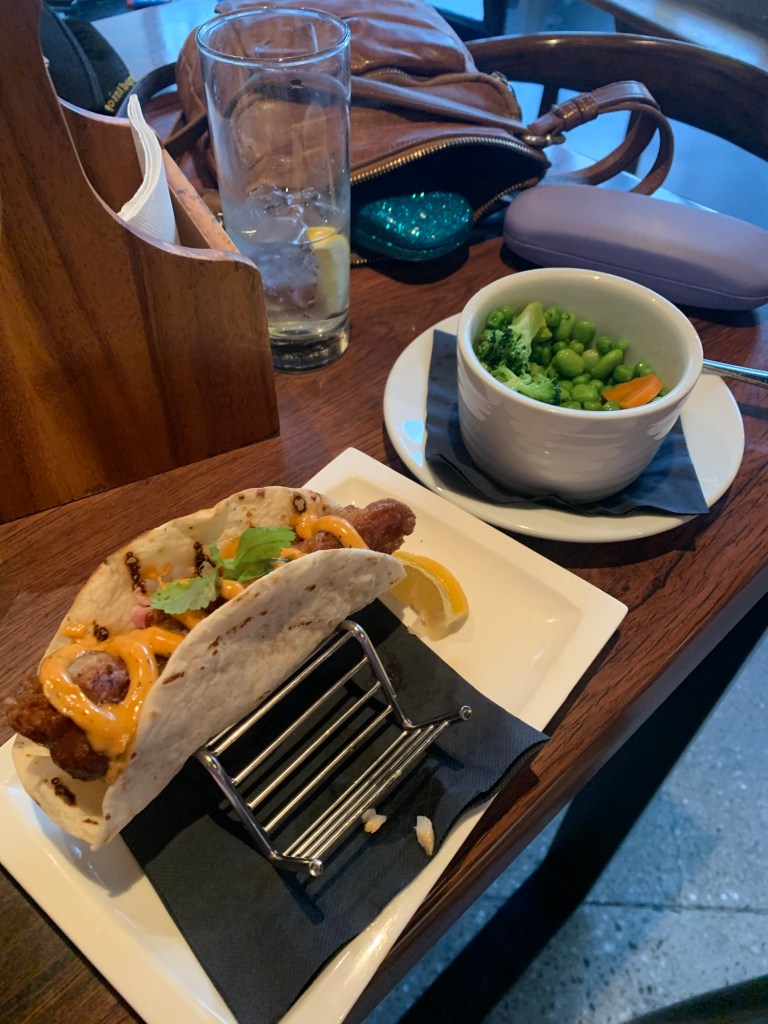 For the first time this week, we were out and about at happy hour so we went to the Rooftop bar that Wayne had been eyeing off all week. There wasn’t much of a view so we settled in on the bottom level. The bartender looked after us beautifully – we didn’t have to get up once as he came to us. We decided to have dinner there and I got my seafood fix again – the most delicious fish tacos.
