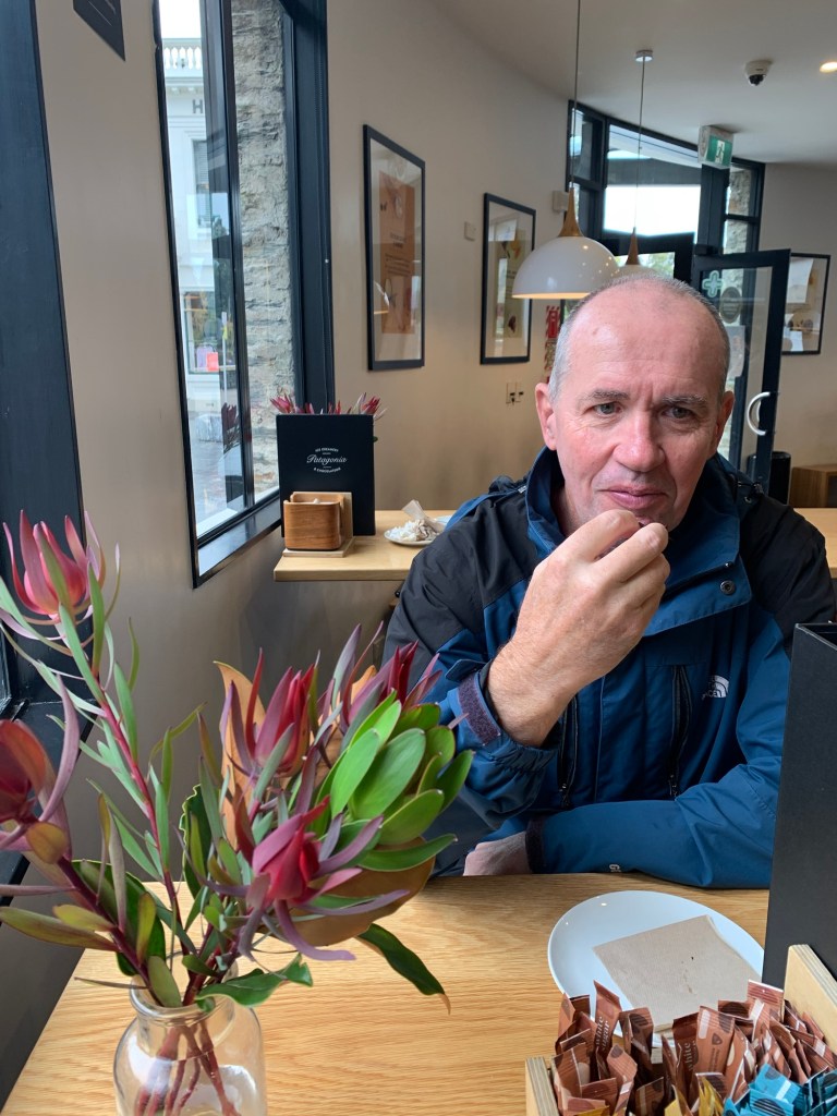 We wandered into town (it was raining steadily) and did a bit of last minute shopping. Wayne had to go via Patagonia again as the chocolates were calling.