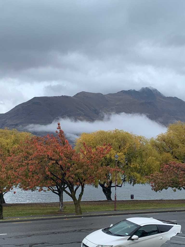 We caught the shuttle bus to the airport and waited for our flight in the jam-packed Queenstown travel Lounge.